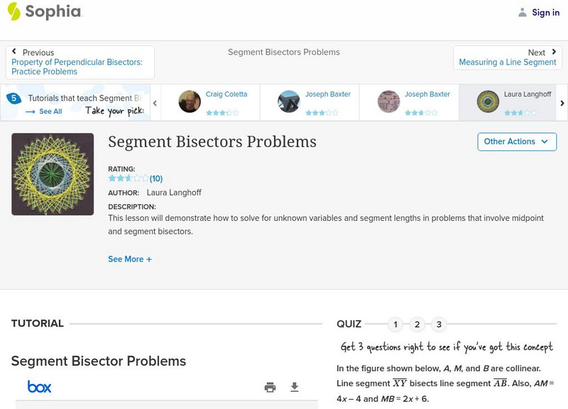 Sophia: Midpoint vs. Segment Bisector: Lesson 7