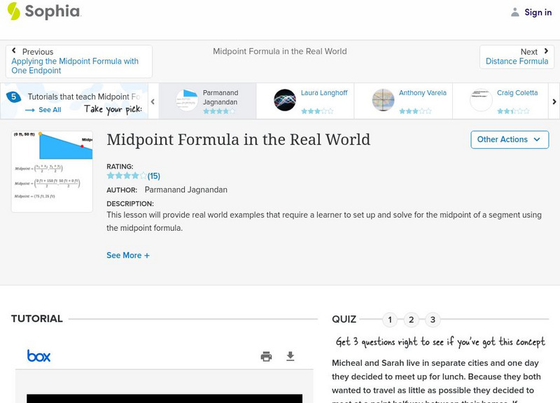 Sophia: Midpoint Formula in the Real World: Lesson 5