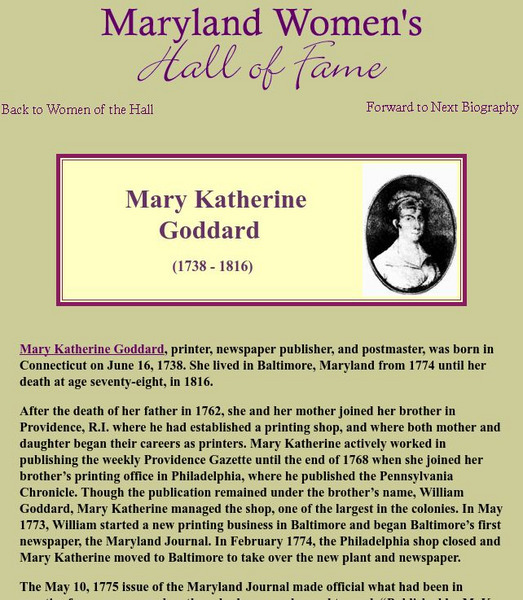 Maryland Women's Hall of Fame: Mary Katherine Goddard