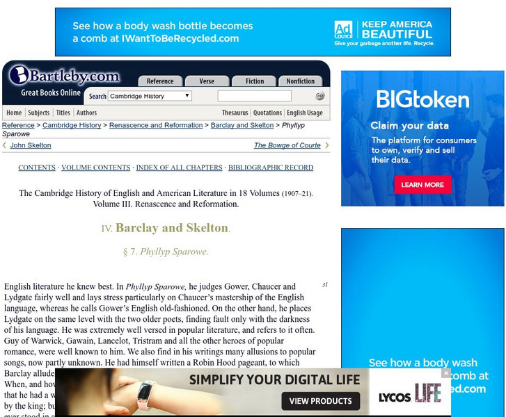 Bartleby.com: John Skelton's "Phyllyp Sparowe"