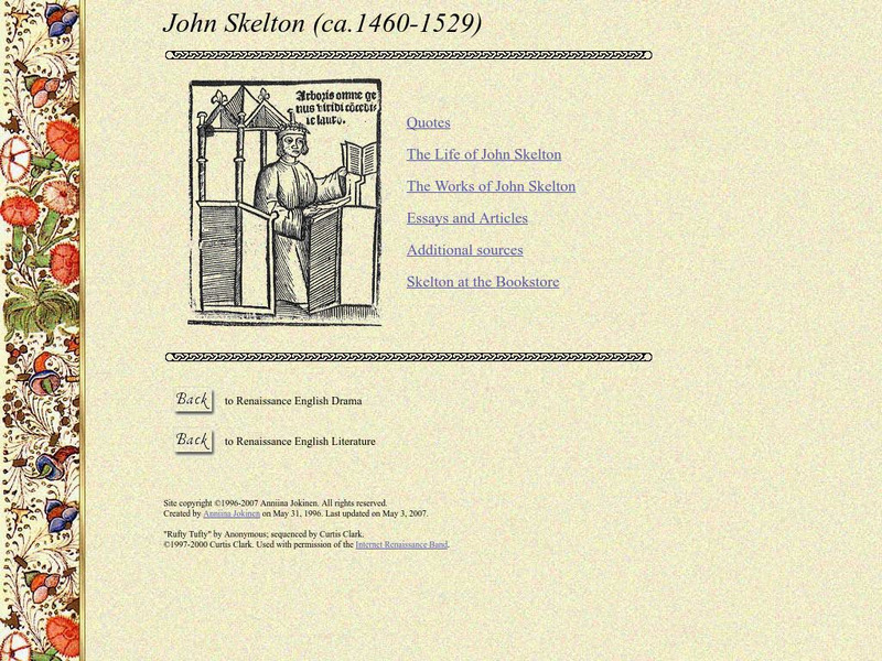 Listing of works of the English renaissance poet John Skelton (1460-1529) with links to actual text.