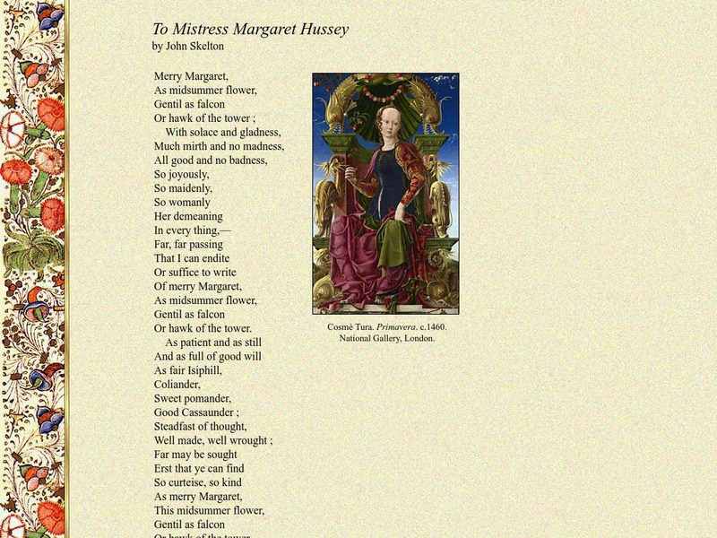 Text of John Skelton's "To Mistress Margaret Hussey." Links to other poems.