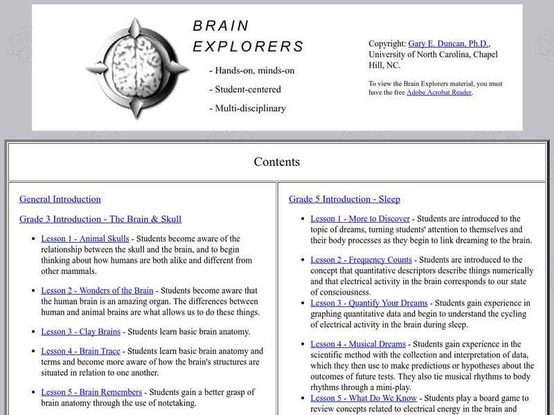 Students will become "Brain Explorers" as they use this website to learn more about the brain and skull. Includes hands-on multidisciplinary activities.