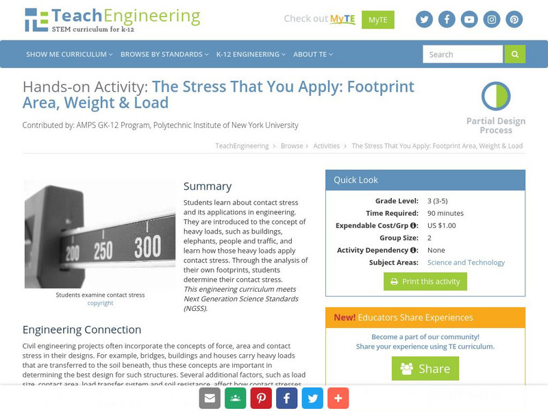Students learn about contact stress and its applications in engineering. They are introduced to the concept of heavy loads, such as buildings, elephants, people and traffic, and learn how those heavy loads apply contact stress. Through...