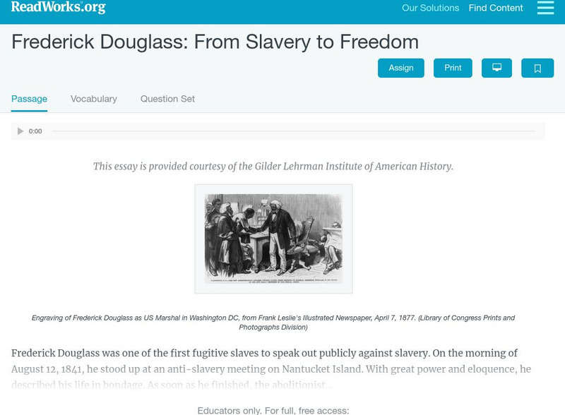 Read Works: Frederick Douglass: From Slavery to Freedom