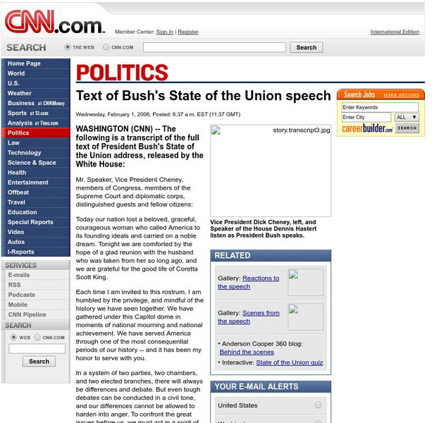 Provided is the complete text of President Bush's State of the Union address given on January 31st, 2006.