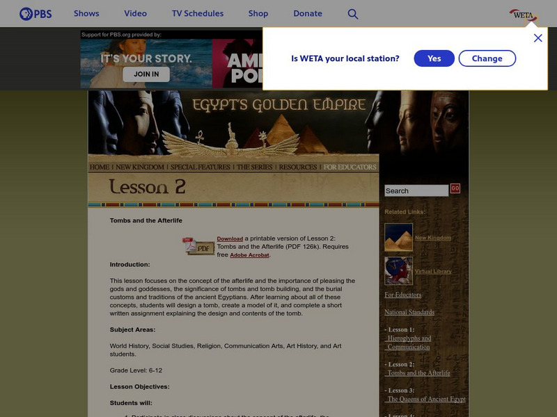 Pbs Teachers: Tombs & Afterlife (Lesson on the Beliefs of Ancient Egyptians)