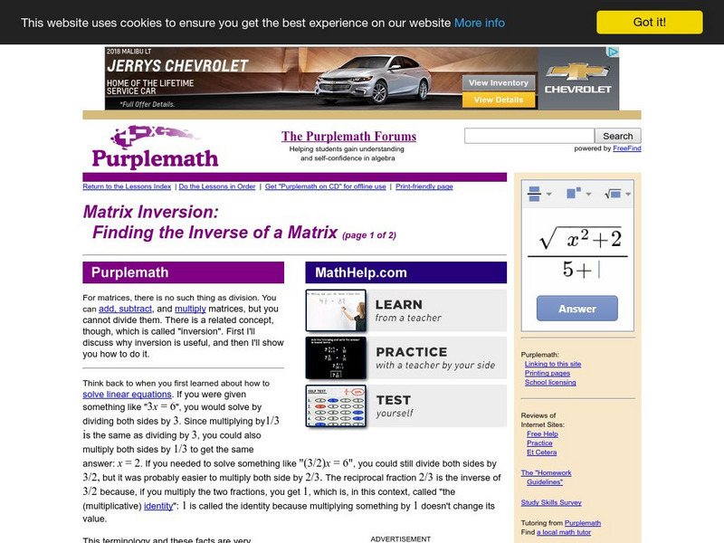 Purplemath: Matrix Inversion: Finding the Inverse of a Matrix