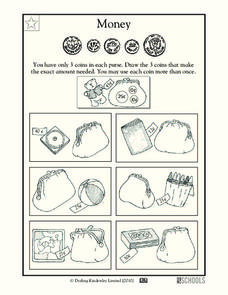 Here's a great way to get scholars drawing out math problems. This money math worksheet gives them five coins to start with. They find as many combinations of three as they can to create different totals. Two examples are given here, and...