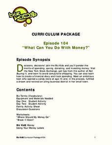 Students watch a Biz Kidz video about money, learn what they can do with money, and fill out worksheets on what they learn. Students learn about spending, saving, donating, and investing.
