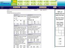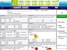 In this money word problems for grade 4 instructional activity, 4th graders answer 10 multiple choice questions about money, not interactively, then scroll down to see the answers.