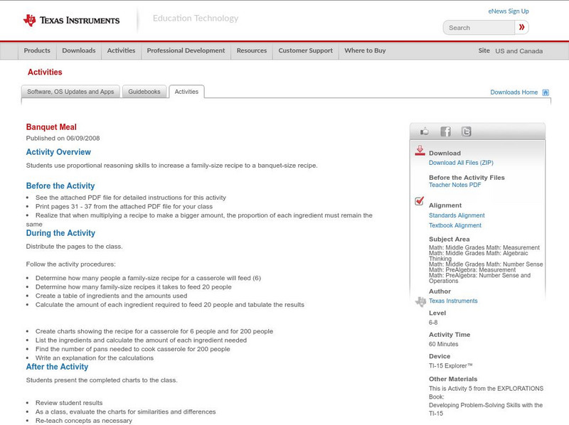 In this activity, students use proportional reasoning skills to increase a family-size recipe to a banquet-size recipe.