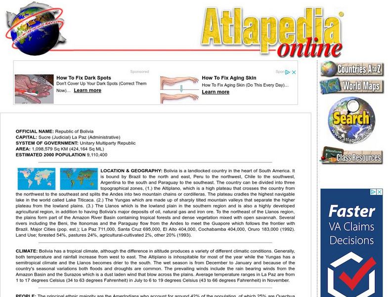 This resource on Bolivia is full of useful information to help with a research project. Covers geography, climate, people, history, economy, and more. Click on the maps to enlarge them.