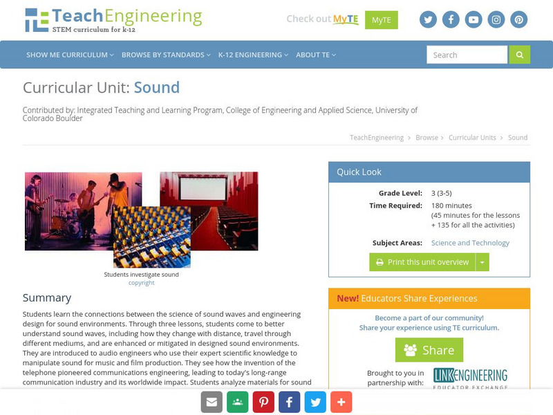 Students learn the connections between the science of sound waves and engineering design for sound environments. Through three lessons, students come to better understand sound waves, including how they change with distance, travel...