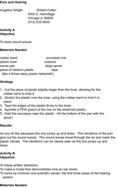 This site provides two activities that can be used in the primary elementary classroom. The purpose is to "demonstrate different ways to produce sound."