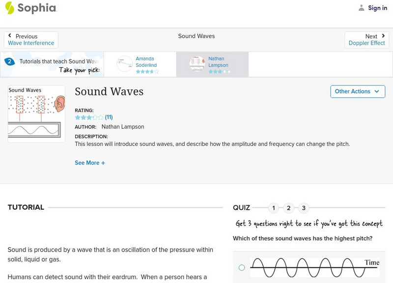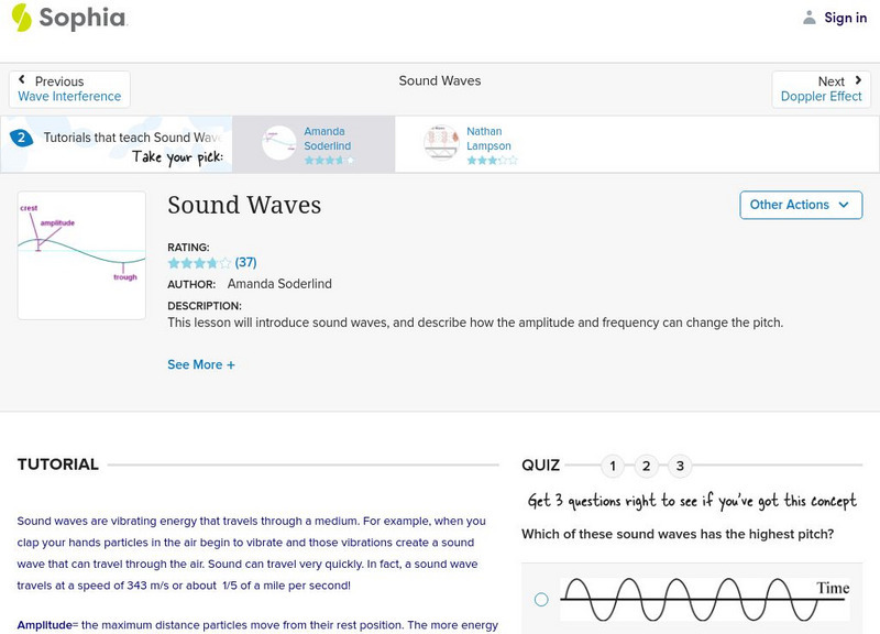 This lesson will introduce sound waves, and describe how the amplitude and frequency can change the pitch. It is 1 of 2 in the series titled "Sound Waves."
