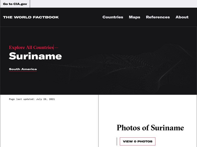 This resource from the CIA World Factbook provides a detailed fact sheet of Suriname. The content covers the country's geography, people, government, economy, communications, transportation, military, and transnational issues. It...