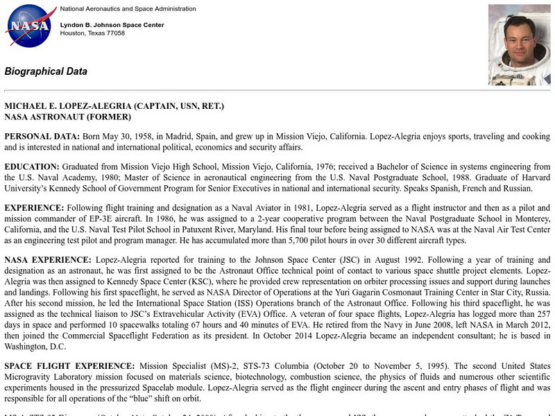 Read biographical facts about this Spanish-born astronaut who is the veteran of three space flights including the Columbia, the Discovery, and the Endeavour.