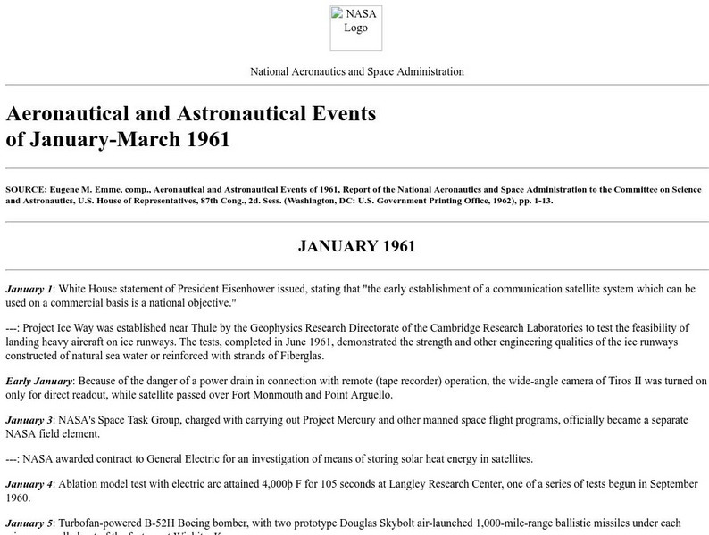 Nasa: Aeronautical/astronautical Events of January March 1961