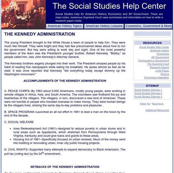 This brief overview of the Kennedy Administration mentions the achievements of the administration, especially in domestic affairs, and the setbacks, especially in foreign policy.