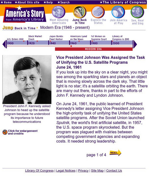 Loc: America's Story: Johnson's Task, Unify Space Program