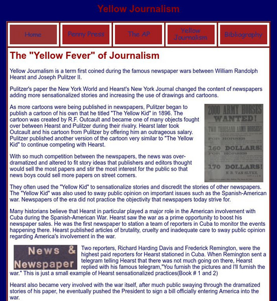 Read a brief explanation of yellow journalism which began as a competition between Joseph Pulitizer and William Randolph Hearst to see which of their papers could sell more copies based on sensationalized stories. See how the involvement...