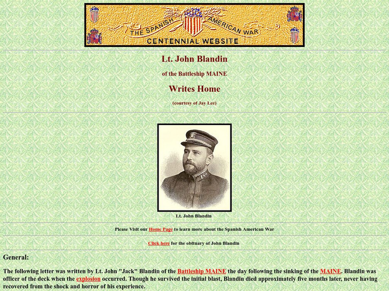 Spanish American War Centennial: Lt. John Blandin: u.s.s. Maine: Letter Home