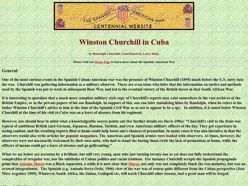 An account of the time Winston Churchill spent in Cuba before American involvement in the Spanish-American War.