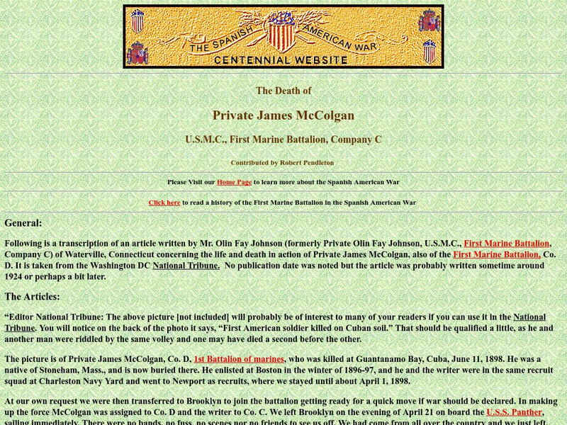 Spanish American War Centennial: The Death of Private James Mc Colgan, u.s.m.c.