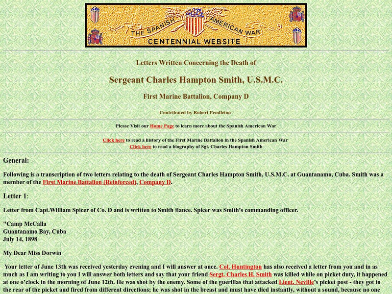 Transcription of letters written concerning the death of Sergeant Charles Hampton Smith, U.S.M.C. First Marine Battalion, Company D during the Spanish-American War.