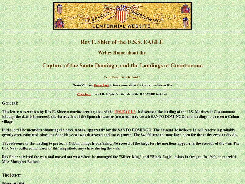 Letter from R. F. Shier, of the USS EAGLE, written to his family about the capture of the Santa Domingo and the landings at Guantanamo during the Spanish-American War.
