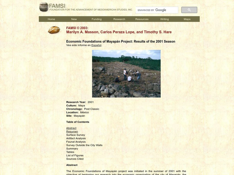 Famsi: Economic Foundations of Mayapan Project (2001)