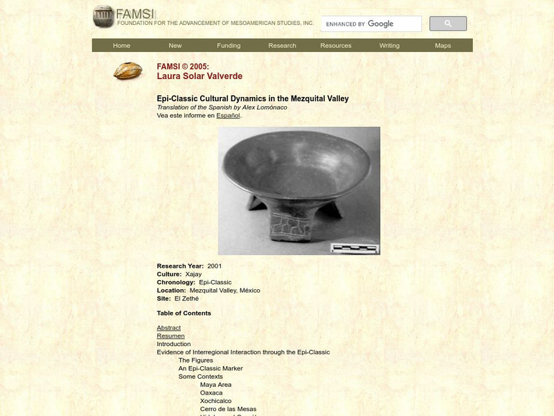 Famsi: Epi Classic Cultural Dynamics in the Mezquital Valley