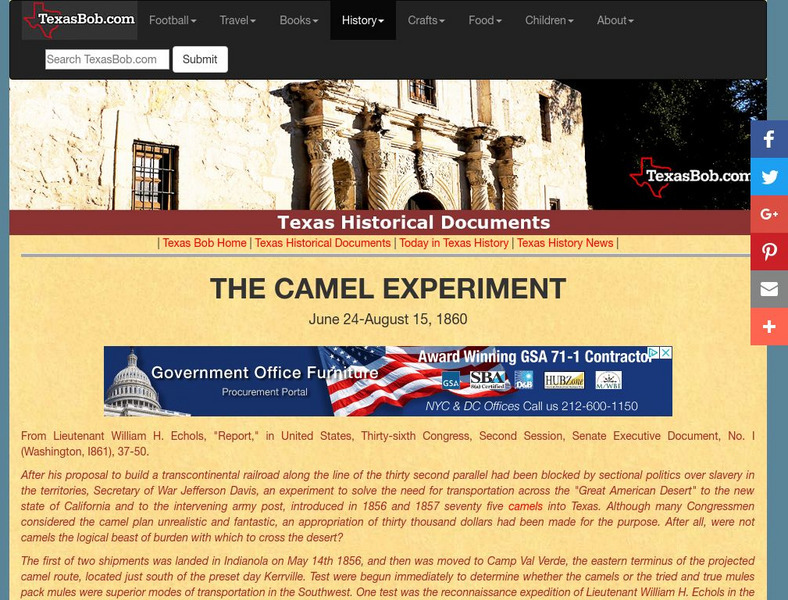 Texas Bob: The Camel Experiment: June 24 August 15, 1860