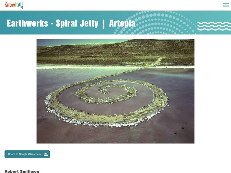 Etv: Artopia: Sculpture Critic: Spiral Jetty by Robert Smithson