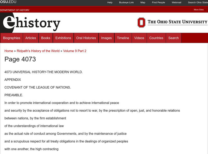 E History: Covenant of the League of Nations