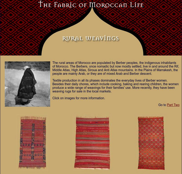 Berber peoples, the indigenous inhabitants of rural Morocco, are known for their spectacular weaving. Shown on this website are 14 different examples.