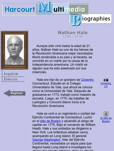 This brief biography presents a good review of the life of Nathan Hale, a famous Revolutionary war captain and spy. (In Spanish)