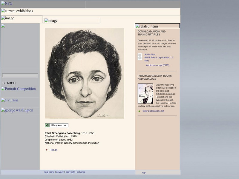 Listen to Wendy Wick Reaves, curator at the National Portrait Gallery, discuss this pencil drawing of convicted spy, Ethel Rosenberg, and what the drawing meant to the artist, Elizabeth Catlett.