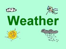 Intended for use with the very littlest of learners, this presentation provides the opportunity to identify various types of weather. An image of sun, rain, snow, wind, storm, and clouds are shown directly under their associated word....