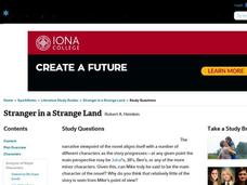 In this online interactive reading comprehension worksheet, students respond to 25 multiple choice questions about Robert A. Heinlein's Stranger in a Strange Land. Students may submit their answers to be scored.