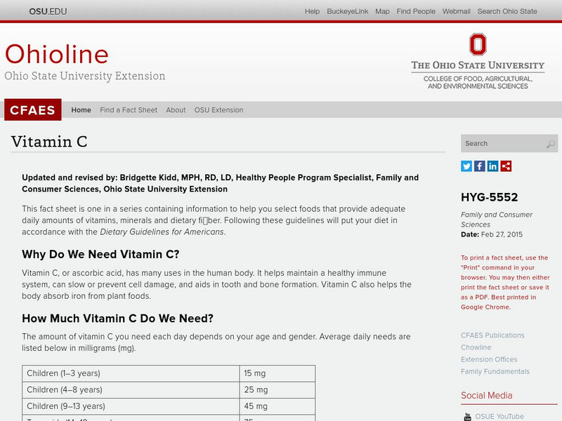 The Ohio State University: Vitamin C (Ascorbic Acid)