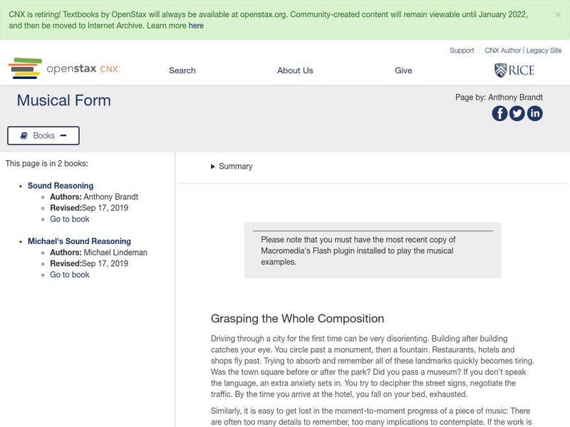 Open Stax: Catherine Schmidt Jones: Form in Music