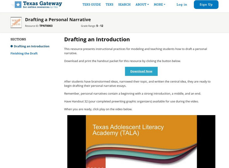 Texas Gateway: Teaching Personal Narrative Texts: Drafting a Personal Narrative