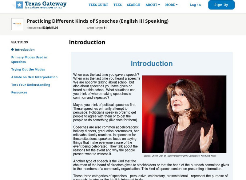Texas Gateway: Practicing Different Kinds of Speeches (English Iii Speaking)