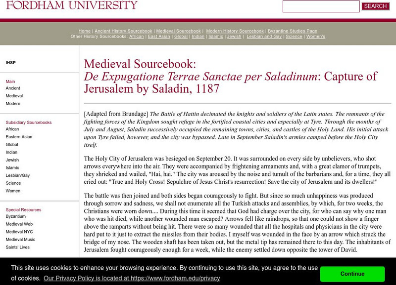 Fordham University: Medieval Sourcebook: The Capture of Jerusalem by Saladin