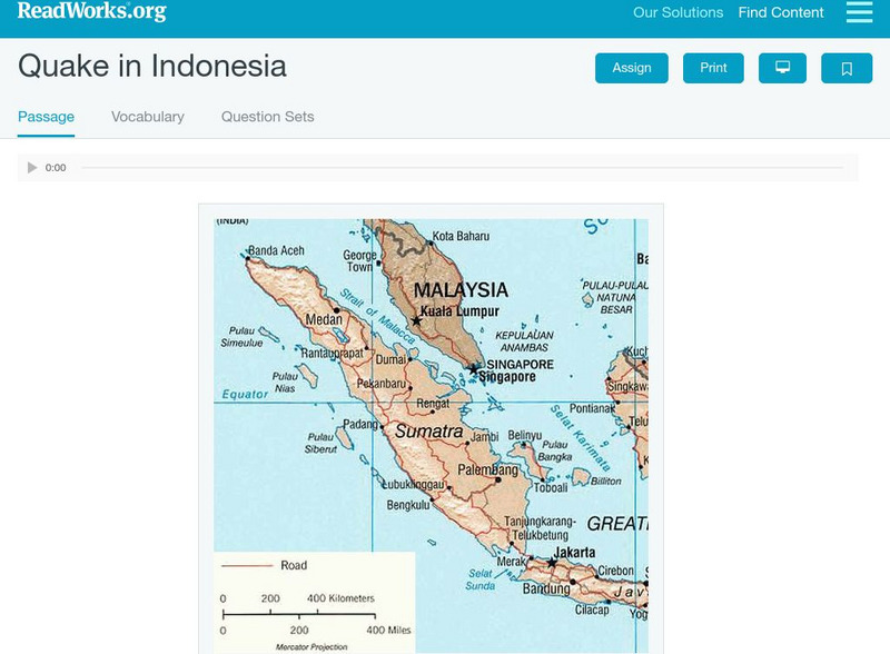 [Free Registration/Login Required] An informational text about a series of earthquakes on the island of Sumatra in Indonesia. A question sheet is available to help students build skills in reading comprehension.