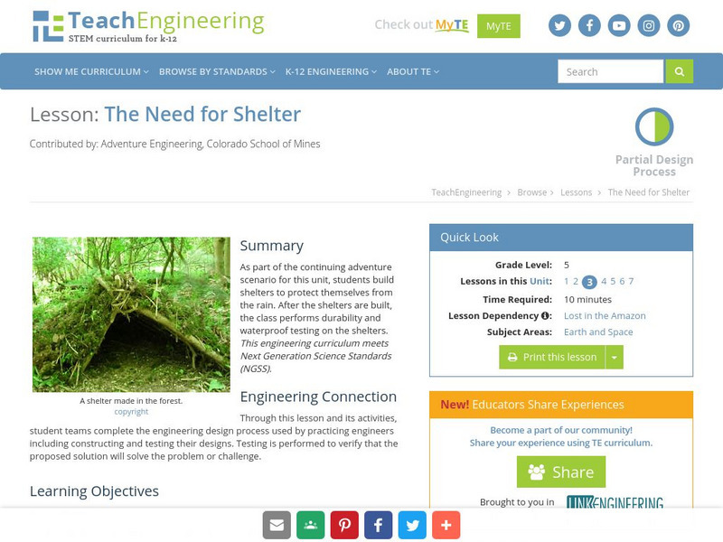 In this activity, the students will build a shelter in order to protect themselves from the rain. After the shelters are built, the class will perform durability and water proof testing on the shelters.