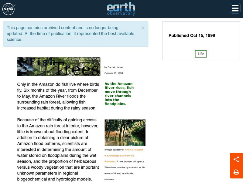 The Amazon River rises each year from December to May, forcing fish to flow through the tops of trees. Learn how satellites and technology track the rising and fall of the Amazon River and how this affects the rain forest.