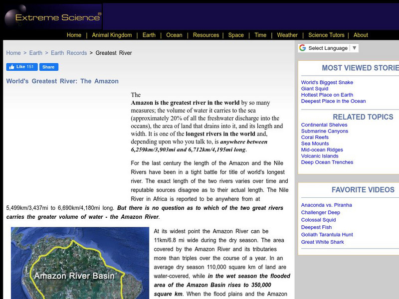 This Extreme Science article looks at the Amazon River and it is called the world's greatest river.